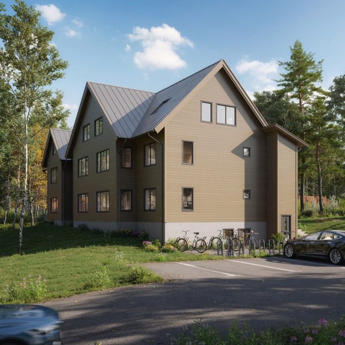 12 klimatsmarta hyresrätter i naturnära Knivstas södra delar.